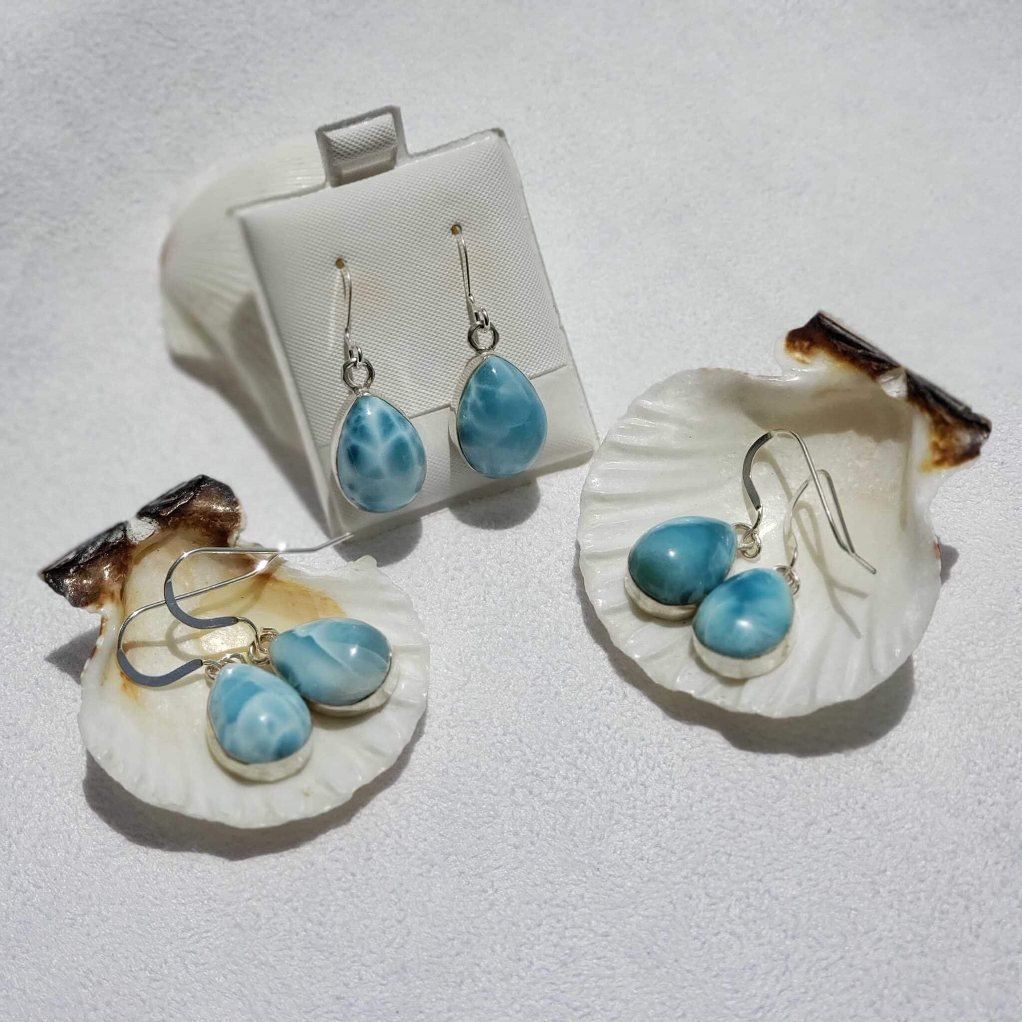 Larimar earrings dangles maked with silversterling 925 material, perfect jewelry pair for wear to any ocation.